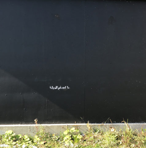 In 2016 Bahia Shehab started an international street campaign celebrating the work of Palestinian poet Mahmoud Darwish. The first intervention was in Vancouver-Canada. In February she sprayed the stanza “Stand at the corner of a dream and fight” in downtown Vancouver. Street expression is no longer tolerated in Cairo. Shehab finds that the work of Darwish is more relevant today with the current political atmosphere in most of the Arab World.